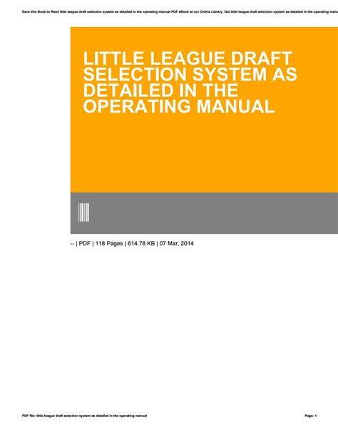 Online PDF Little league draft selection system operating manual Doc ManyBooks